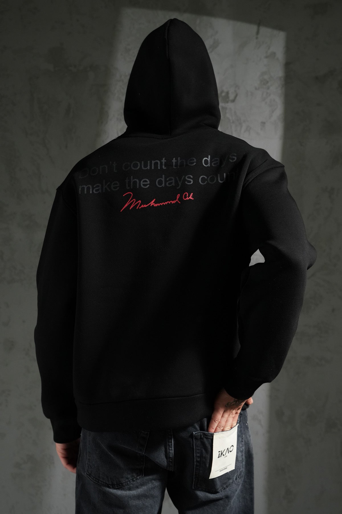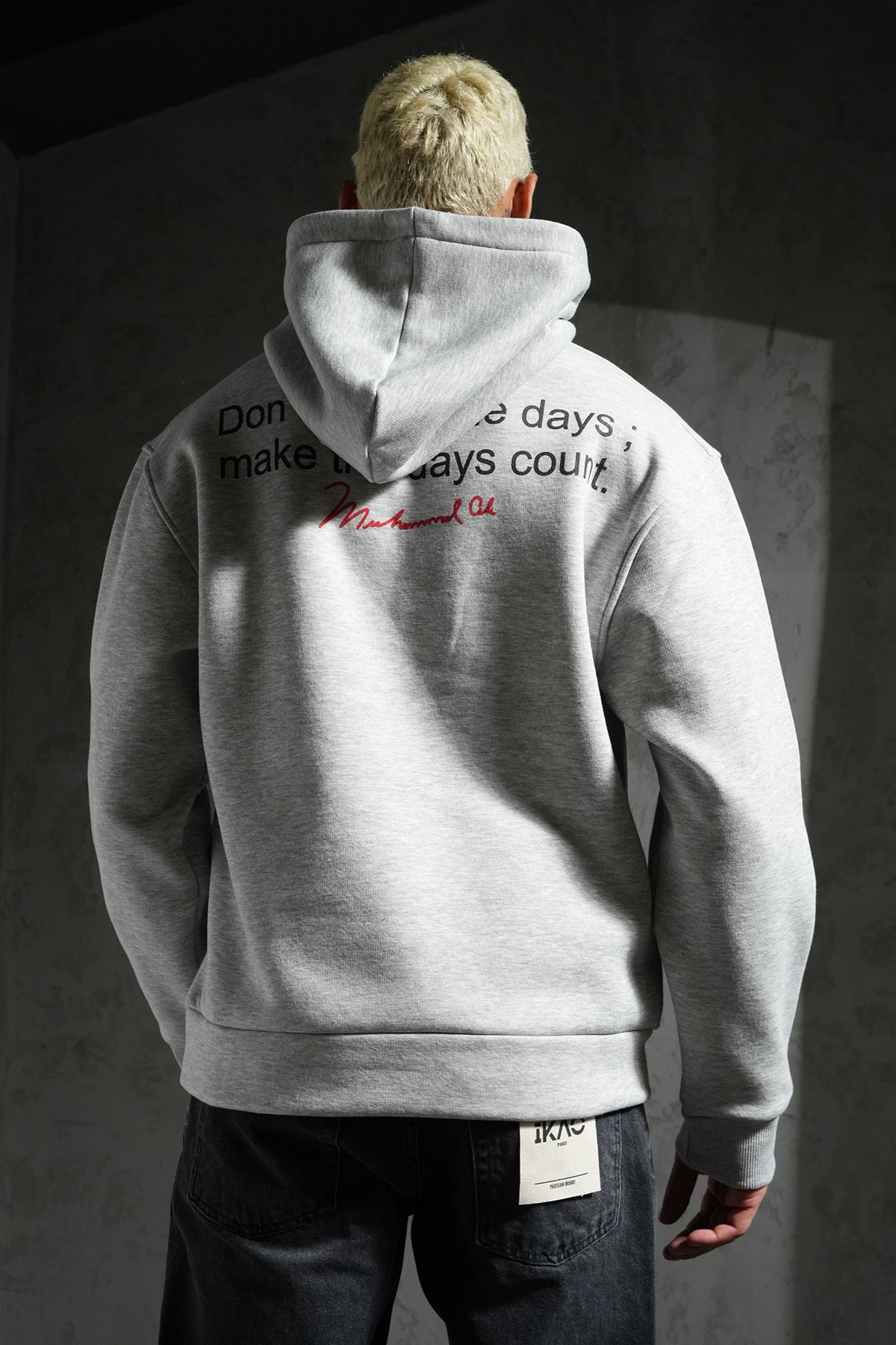 Le visuel ton sur ton à l’avant offre un rendu discret et élégant, tandis que le dos présente une citation subtile en impression mate, accompagnée d’une signature contrastée rouge qui apporte une touche de caractère.