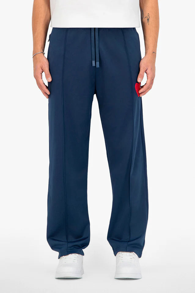 Pantalon décontracté en tissu technique avec cœur brodé en éponge sur la jambe. Léger, confortable et moderne, il s’inspire du sportswear contemporain pour un style minimaliste et fonctionnel.