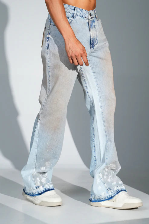 JEAN FLARE LL2000391 – Blue Washed Panelled Jeans