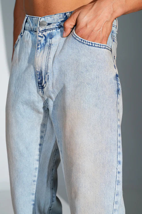 Jean flare bleu à empiècements avec effet délavé, pour un style urbain contemporain et casual. Doté de poches avant et arrière, il combine confort, tenue et modernité.