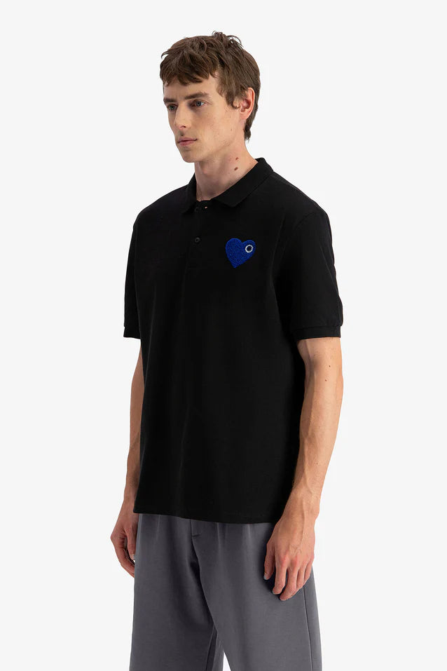 Polo en coton avec cœur en éponge brodé sur la poitrine. Élégant et confortable, il combine un style minimaliste avec une finition raffinée, parfait pour un look casual chic.